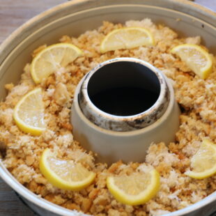 - Sprinkle the crumb stuffing evenly over fish then arrange thin slices of lemon on top